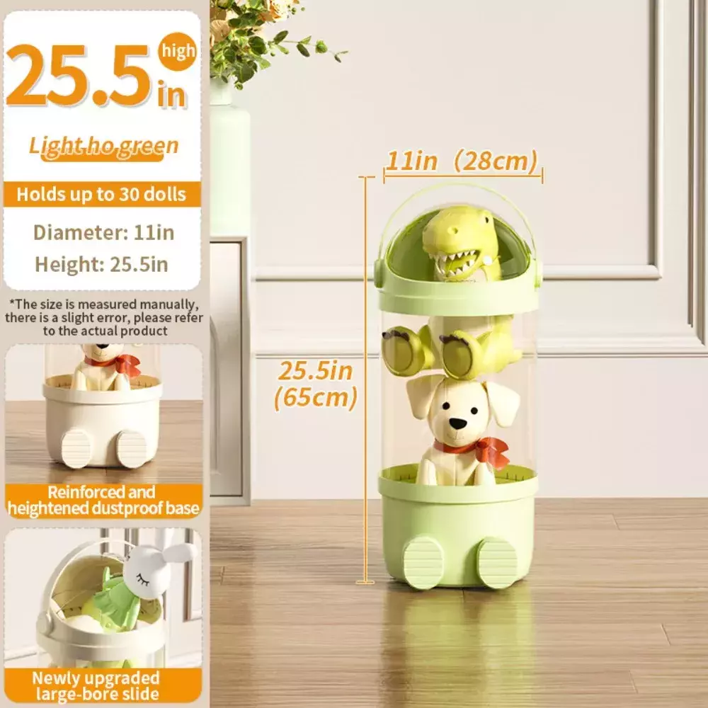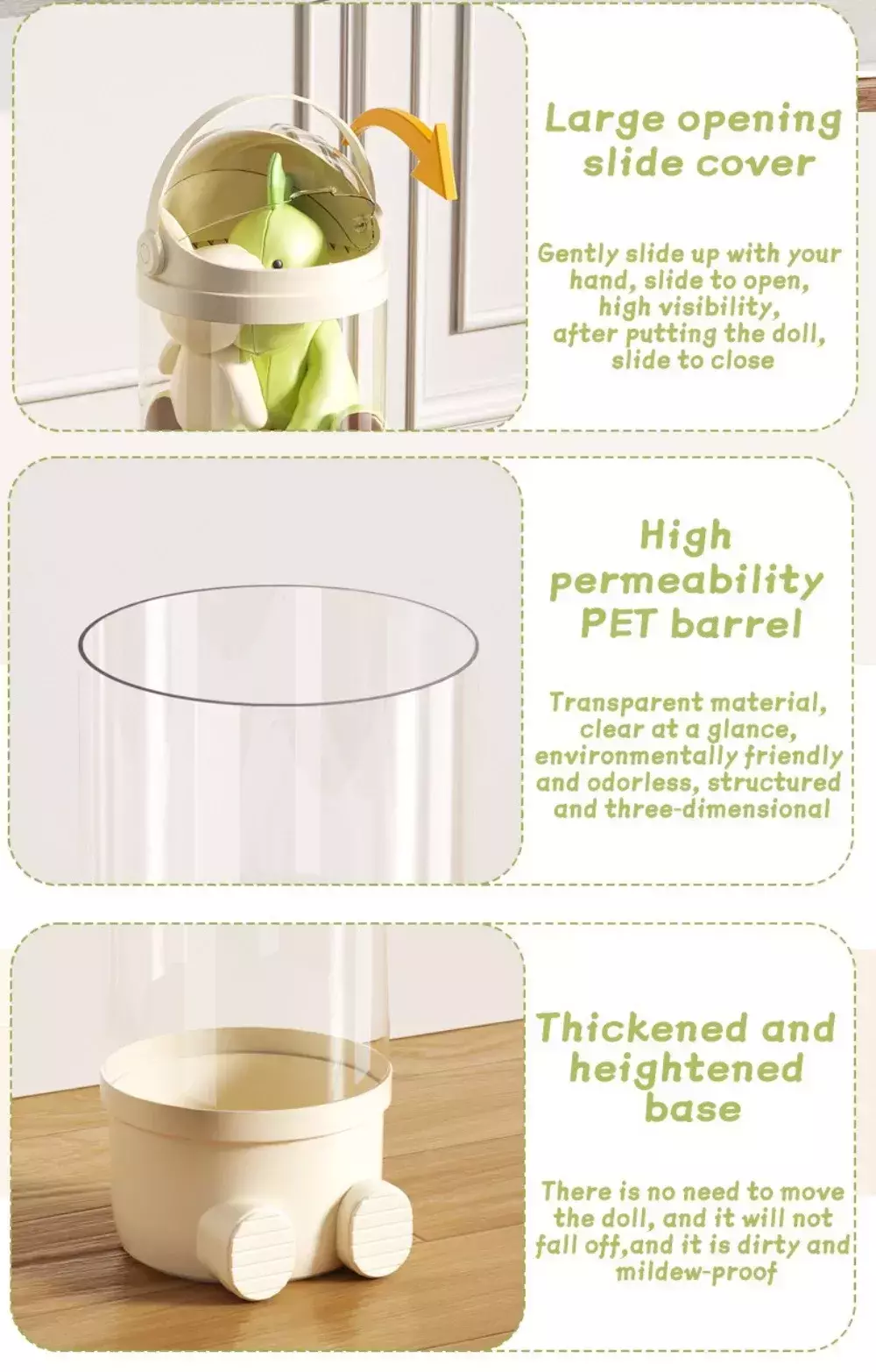 1. **Transparent Design**: The clear plastic construction of this storage box allows you to easily see and locate your dolls and plush toys. The transparent design adds a fun and modern touch while keeping your child's favorite toys visible and organized.
