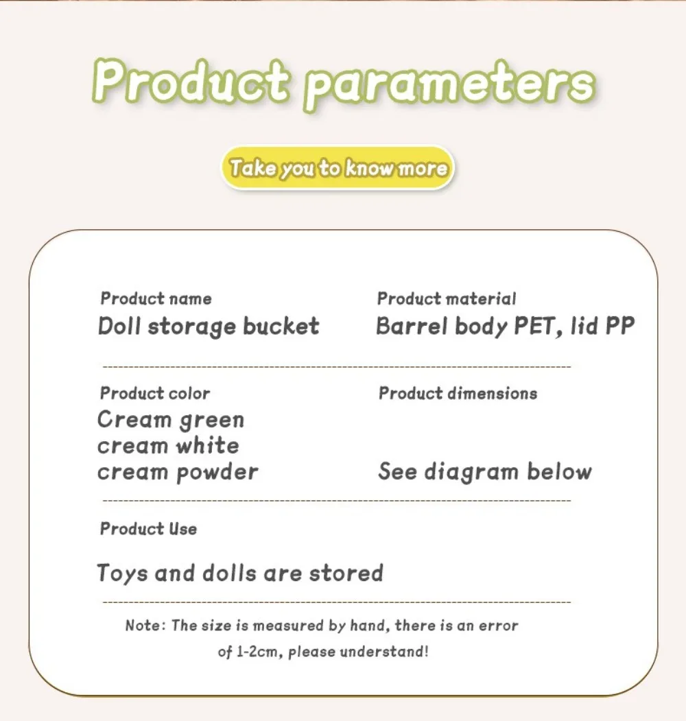 4. **Convenient Handle**: Equipped with a sturdy handle, this storage bucket is easy to carry and transport. Your child can effortlessly move their toys from room to room or take them along on trips, ensuring their favorite companions are always within reach.