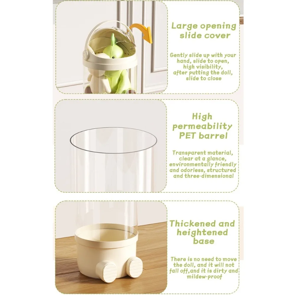1. **Transparent Design**: The clear plastic construction of this storage box allows you to easily see and locate your dolls and plush toys. The transparent design adds a fun and modern touch while keeping your child's favorite toys visible and organized.